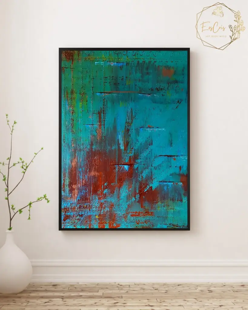 Kolory nie zostały dobrane bo tak nakazuje sztuka. Przyszły same – z zielenią głęboką jak serce lasu, z miedzią płynącą jak pamięć o przodkach, ze złotem, które nie ozdabia, ale przypomina, że jesteśmy światłem, zanim zrodzi się forma w której przyszło nam żyć.